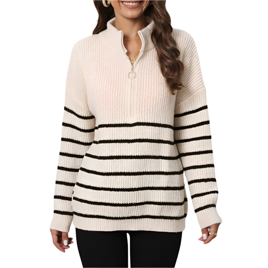 Nava - Gestreepte gebreide trui met halve rits voor dames