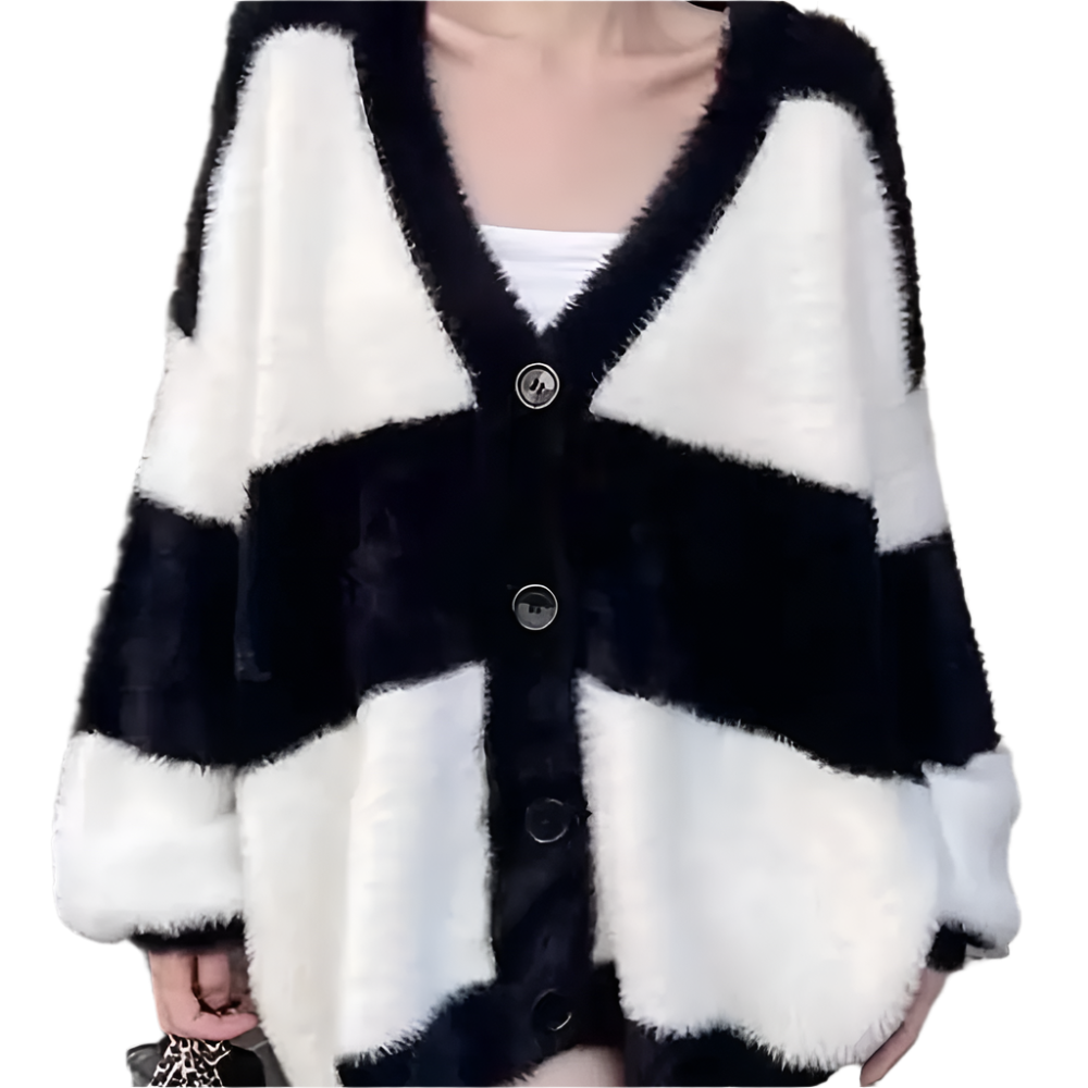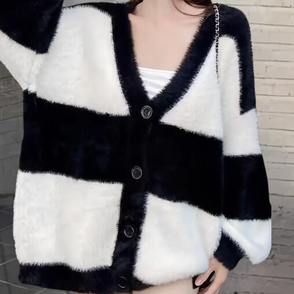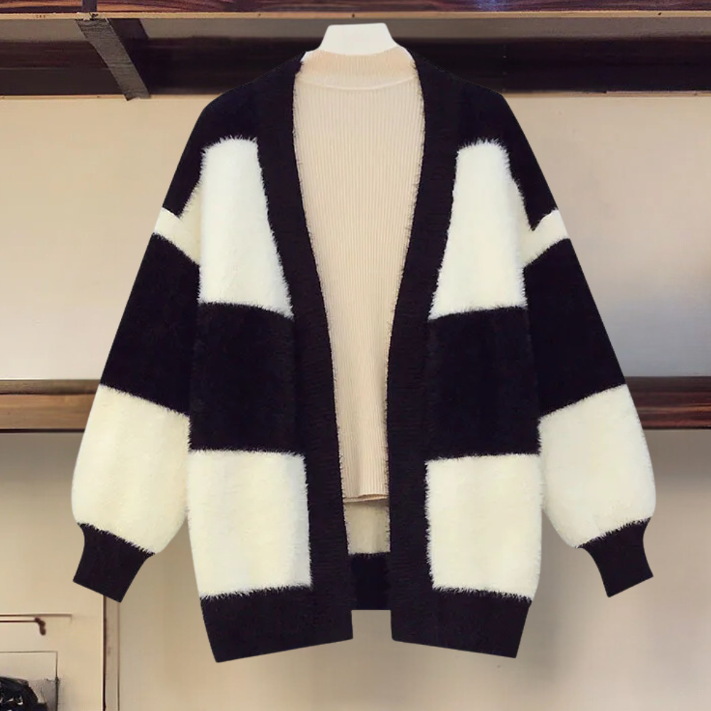 Omarm de perfecte mix van luxe en stijl met het Averna Stylish Striped Women's Cardigan. Voeg het vandaag nog toe aan je garderobe en blijf knus in elegantie!