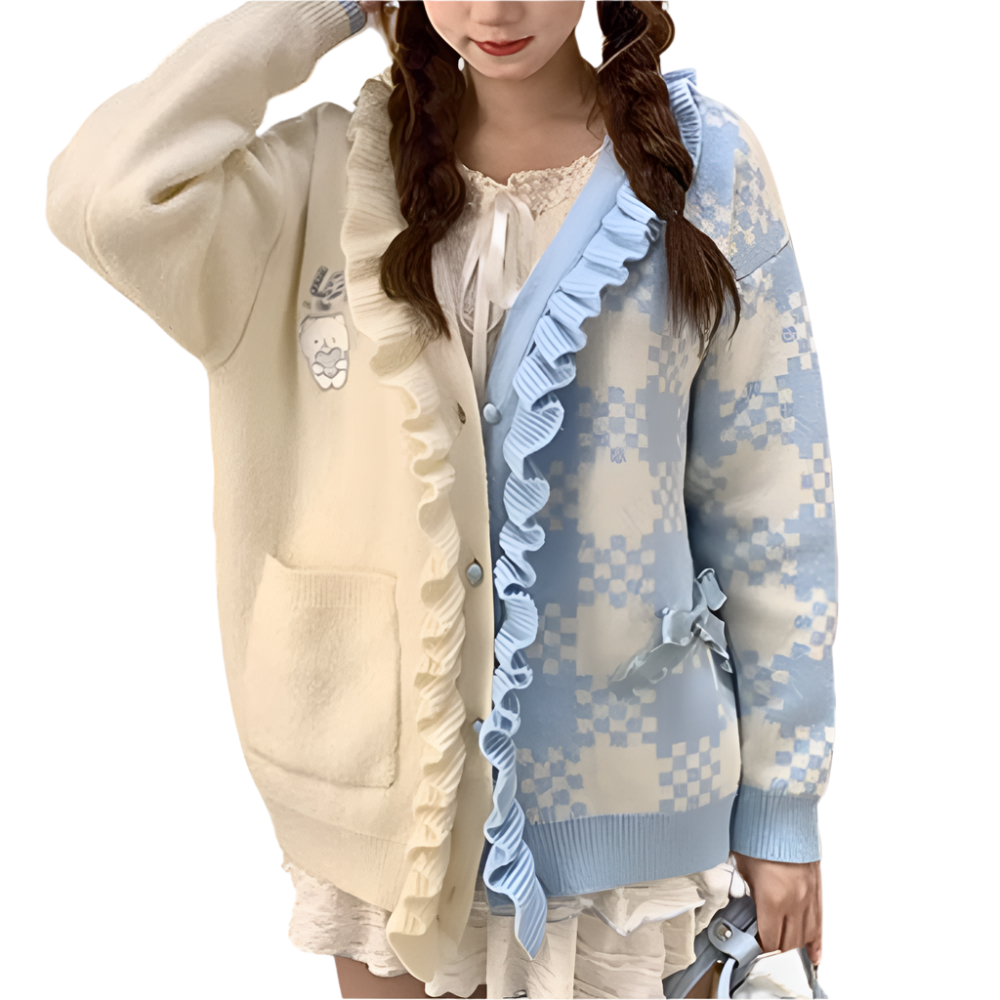 Dit vest is een echte blikvanger voor wie houdt van speels, zacht en uniek. Met z’n contrasterende kleurvlakken, vrolijke ruiten en opvallende rucherand geef je elke outfit meteen iets bijzonders. Het vest is lekker ruim en gemaakt van zacht gebreid materiaal dat fijn aanvoelt en makkelijk combineert. Perfect voor een casual dag, een cosy avond thuis of als finishing touch over een jurk of top.