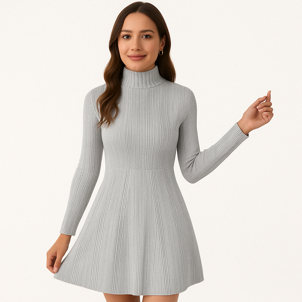 • Design: Lange mouwen, colkraag, ribpatroon en licht uitlopende rok