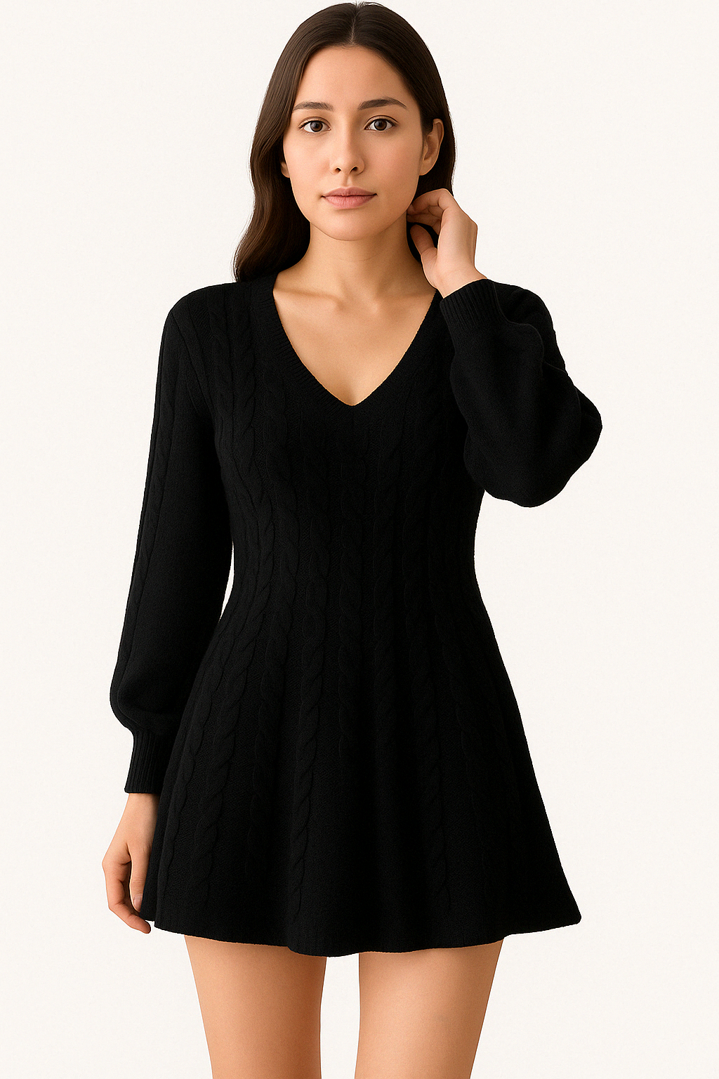 • Design: V-hals, lange mouwen en zwierige rok
