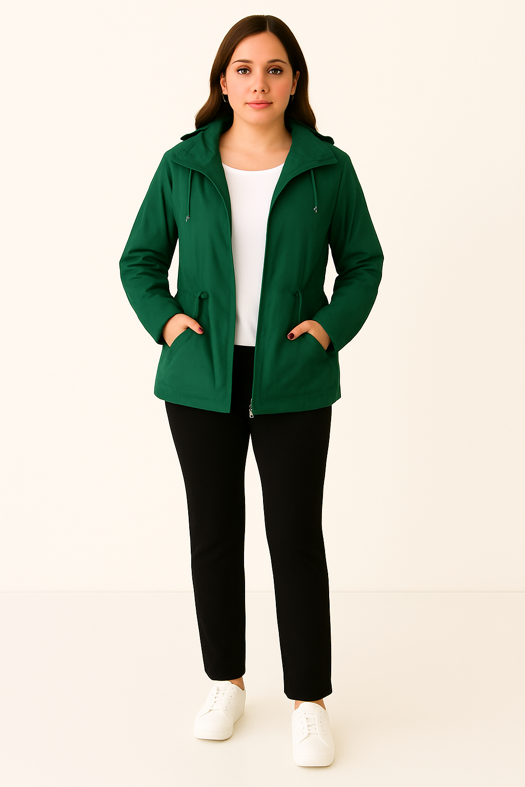 p zoek naar een lichte jas die je beschermt tegen een onverwachte zomerse bui? Deze dames zomerjas met capuchon is precies wat je nodig hebt. Hij zit heerlijk luchtig, is waterafstotend en heeft een flatterende pasvorm met aansnoerkoord in de taille. Of je nu een wandeling maakt, naar werk fietst of een terrasje pakt: met deze jas blijf je droog én zie je er verzorgd uit.