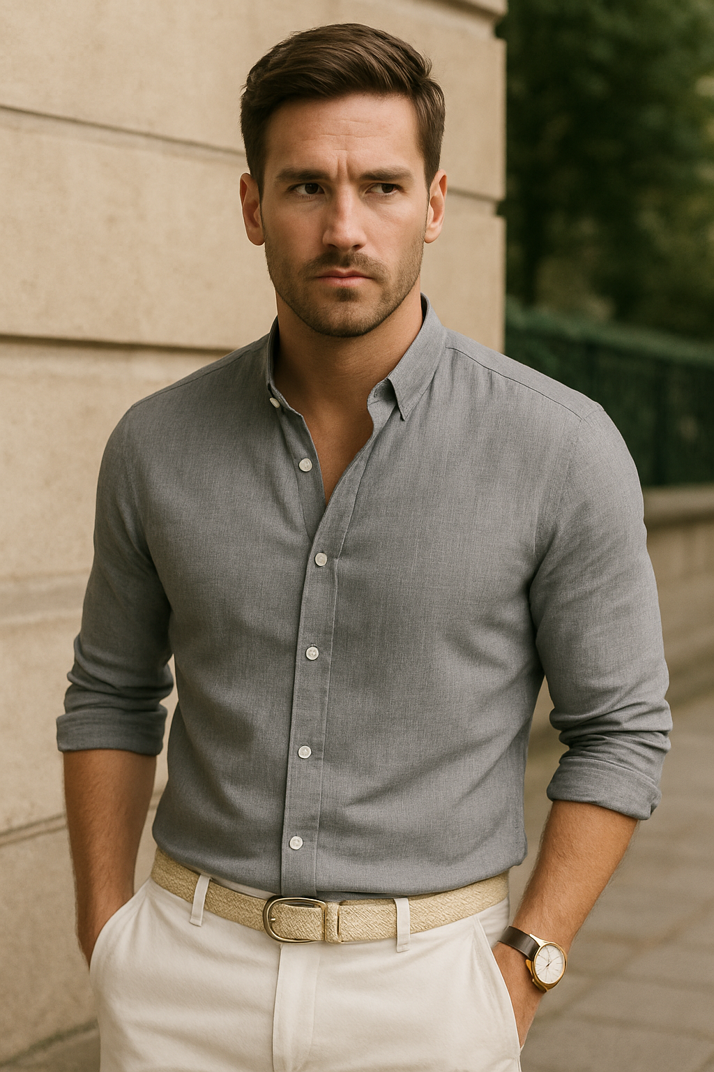 • Zomerse opstaande kraag: Geeft een open en relaxte uitstraling, zonder stijf te ogen.