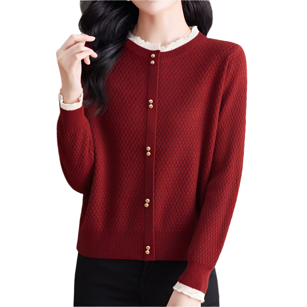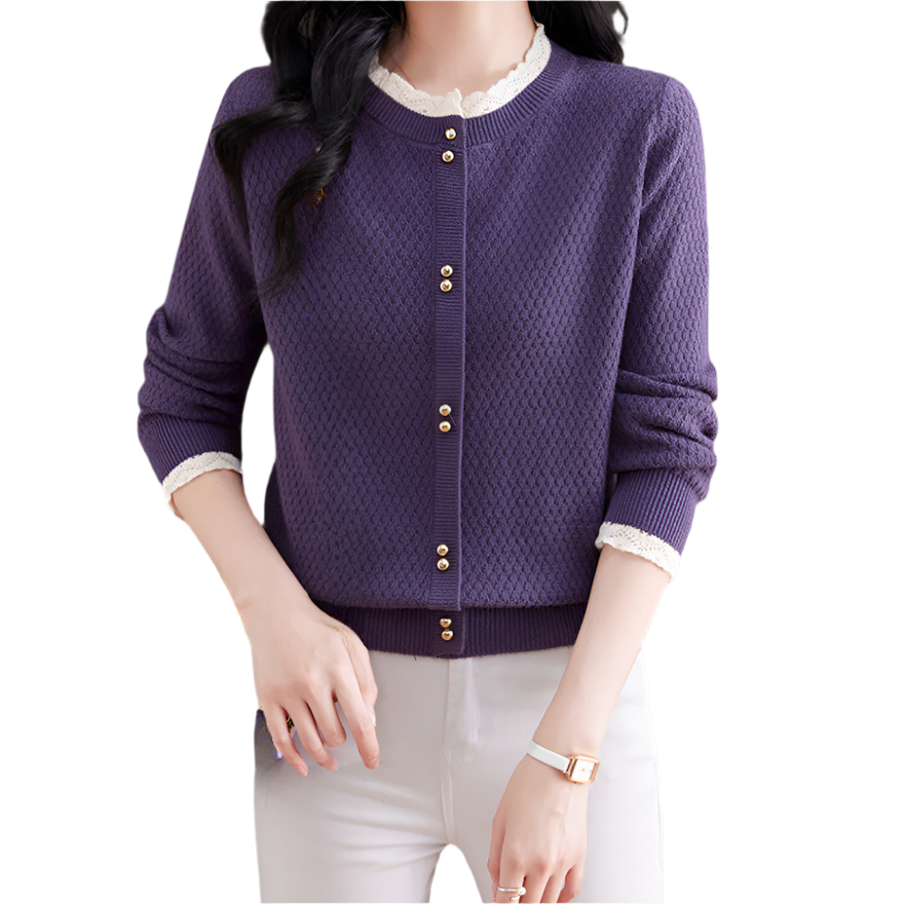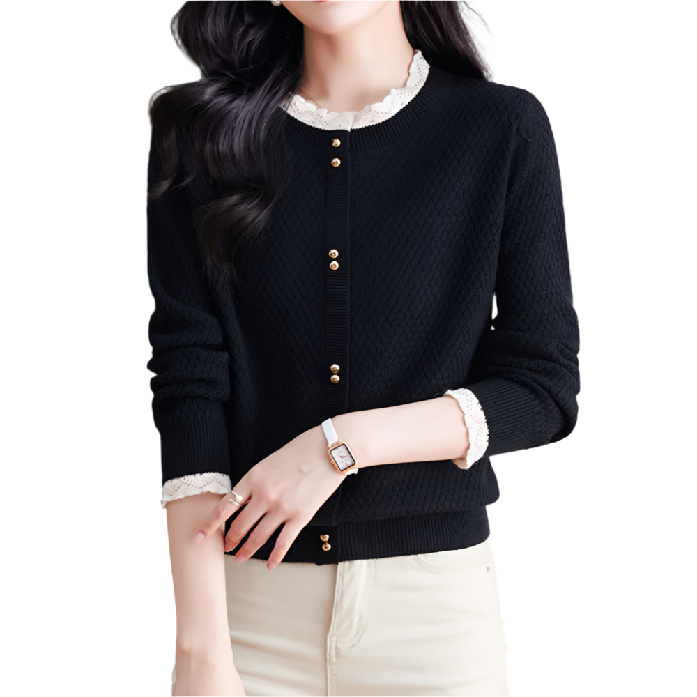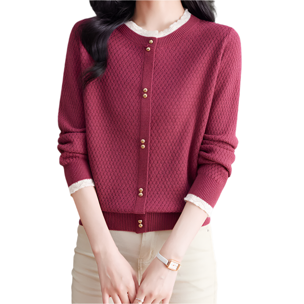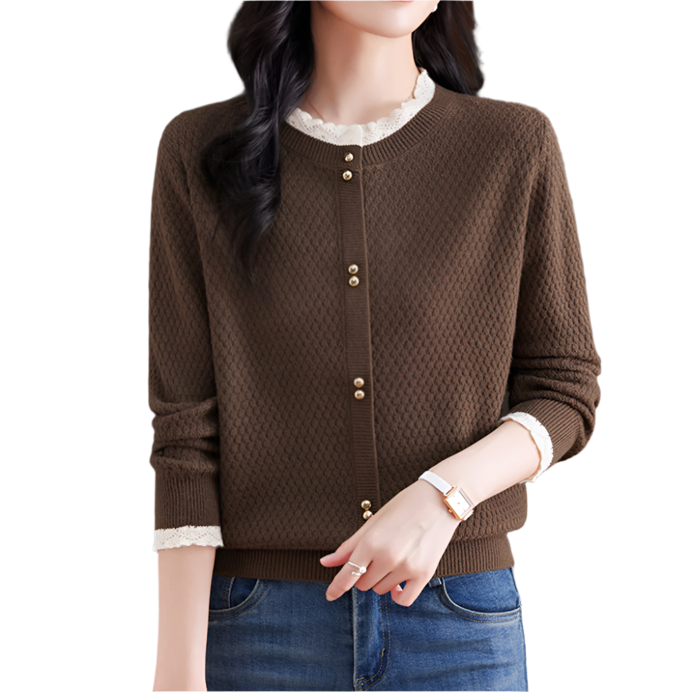 • Tijdloos ontwerp: Elegante knoopdetails versterken de chique uitstraling van de trui.