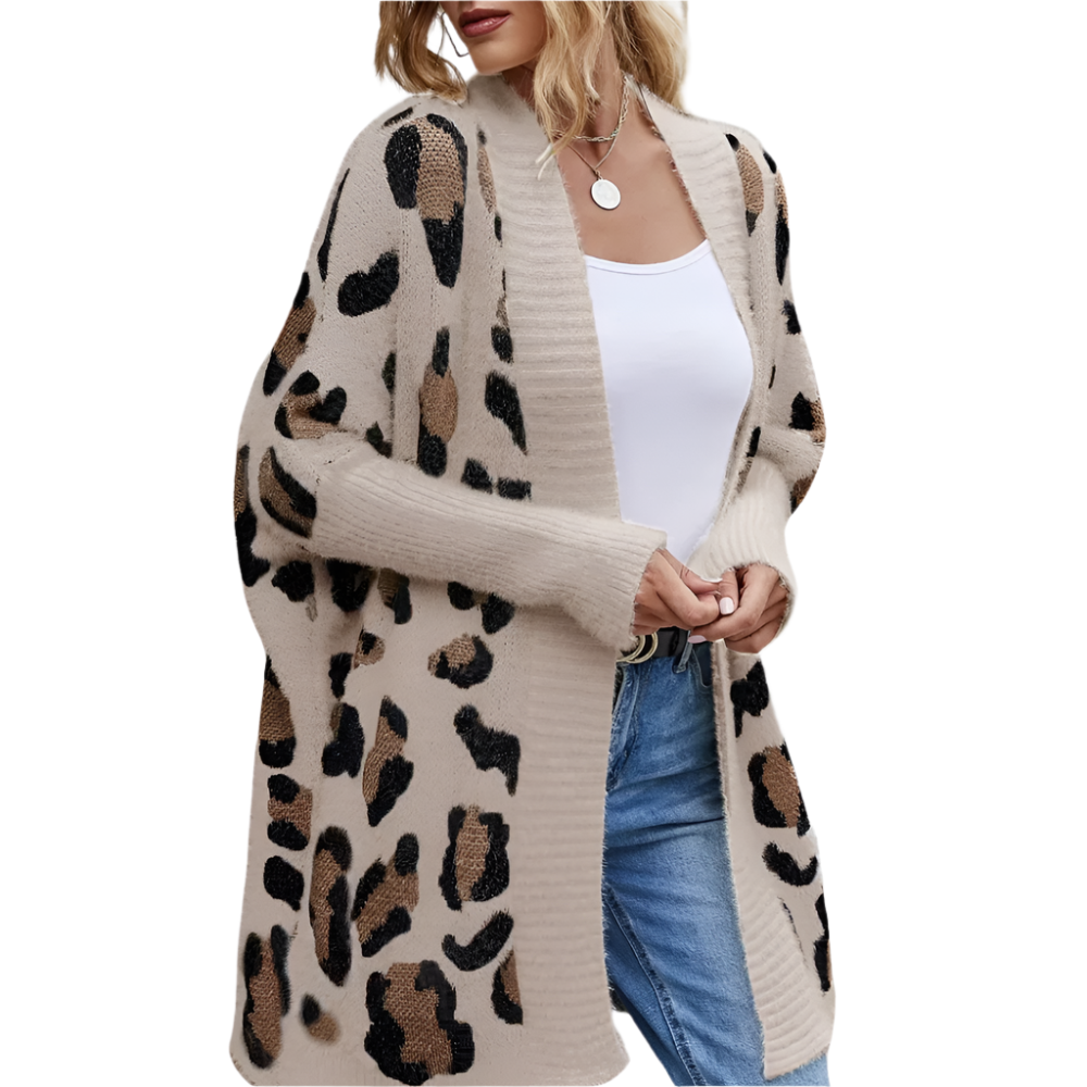 • Elegant ontwerp: Luipaardprint met geribde sjaalkraag en dolmanmouwen voor een chique look.