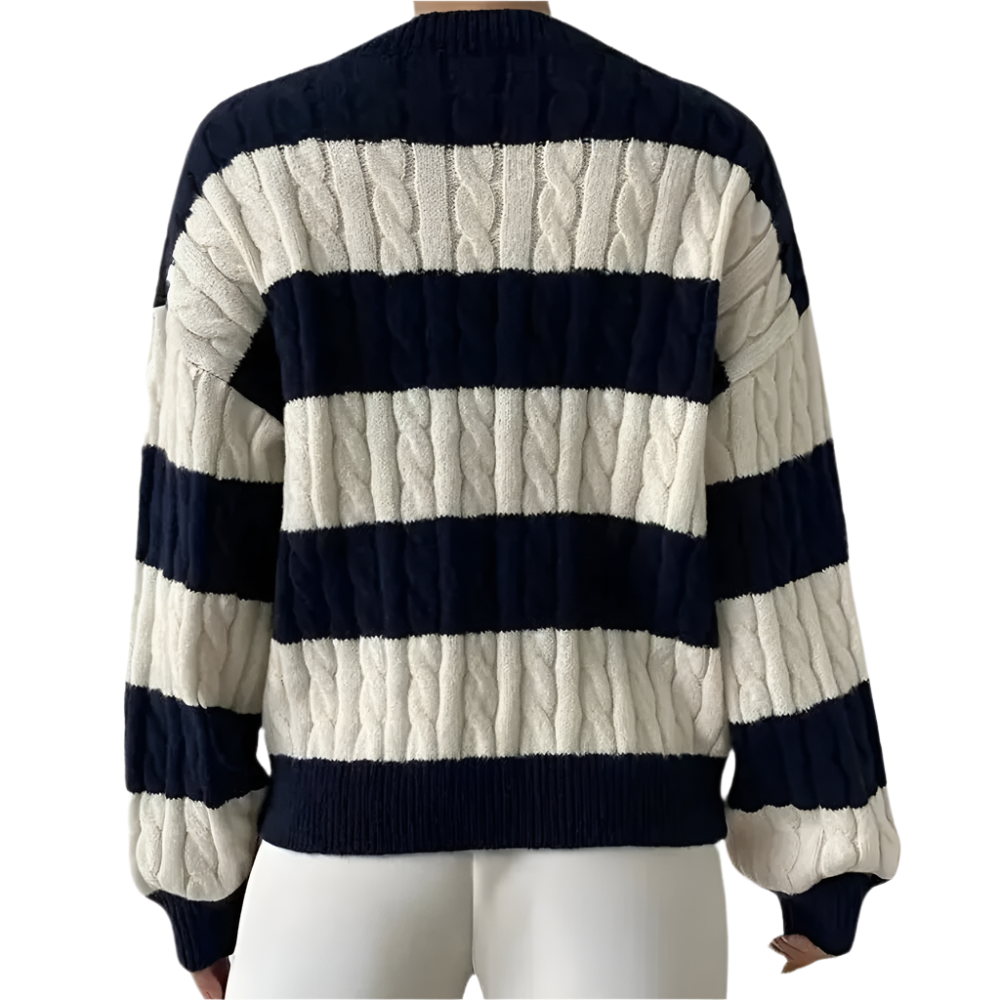 Verfraai je garderobe met de Yelina gestreepte gebreide trui - waar elegantie en dagelijks comfort elkaar ontmoeten!