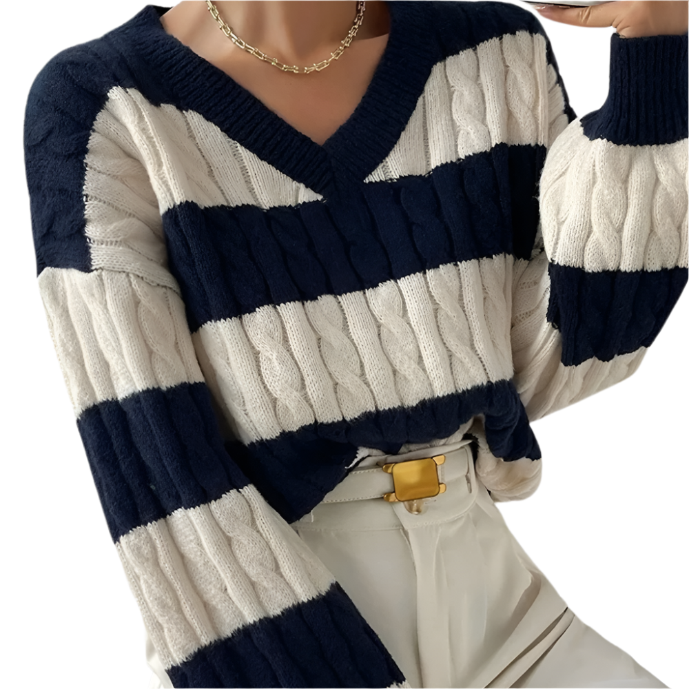 Omarm moeiteloze elegantie met de Yelina Gestreepte Gebreide Sweater